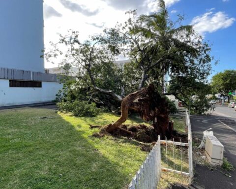 Un arbre Banoir âgé de plus 70 ans est tombé au niveau de la rue des Camélias. L’entrée des résidents de l’immeuble et des commerces est entravée. Notre journaliste Vijay Samy