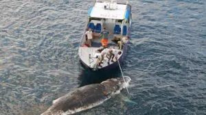 Observée dès le 13 octobre, la carcasse d’un cétacé à la dérive au large Sainte-Rose s’était échouée le lendemain sur une plage à proximité du Bassin Bleu, à Sainte-Anne.