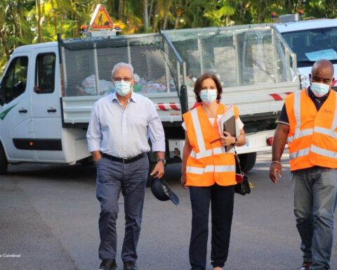 L’équipe environnement de collecte des corbeilles papier a eu la surprise de voir se joindre à elle, lors de sa tournée matinale sur les quartiers du chef-lieu, le Président Maurice Gironcel et la DGS Rosita Hoarau. Une occasion pour eux