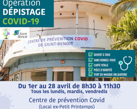 St-Benoît : opération de dépistage pendant tout le mois d’avril Pour faciliter l’accès aux tests et freiner la circulation du virus, la Pharmacie de l’est, en partenariat avec la commune de Saint-Benoît, a décidé de poursuivre son opération de dépistage