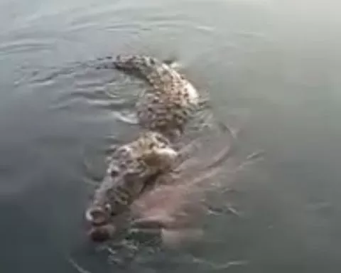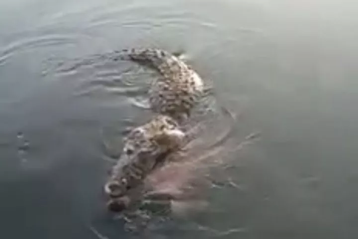 La vidéo d’un crocodile géant transportant le corps d’un homme décédé fait le buzz sur les réseaux.