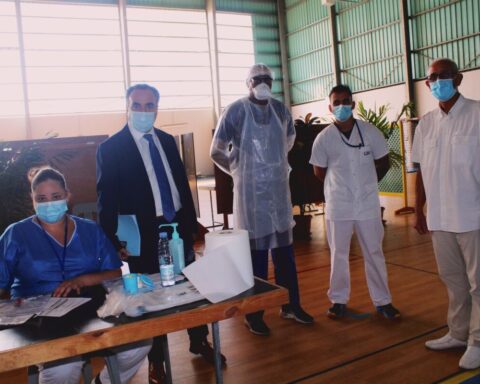 Ce mercredi 07 avril 2021, Jean-Claude LACOUTURE, maire de L’Étang-Salé accueillait Lucien GIUDICELLI, Sous-Préfet de Saint-Pierre au gymnase du Complexe sportif du Centenaire dans le cadre d’une opération de dépistage populationnel. Un dépistage organisé conjointement par l’ARS, la Ville de