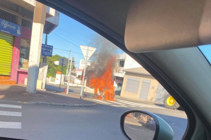 Un auditeur nous signale une voiture en feu au niveau du rond-point chandelle au Tampon. « Il faut passer derrière Weldom, et tourner à gauche au céder le passage pour pouvoir passer !« ,