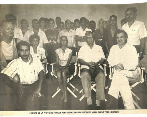 Huguette Bello en mars 1992 lors des accords Sudre–Vergès pour la présidence de la Région dans les locaux de Radio Free Dom.