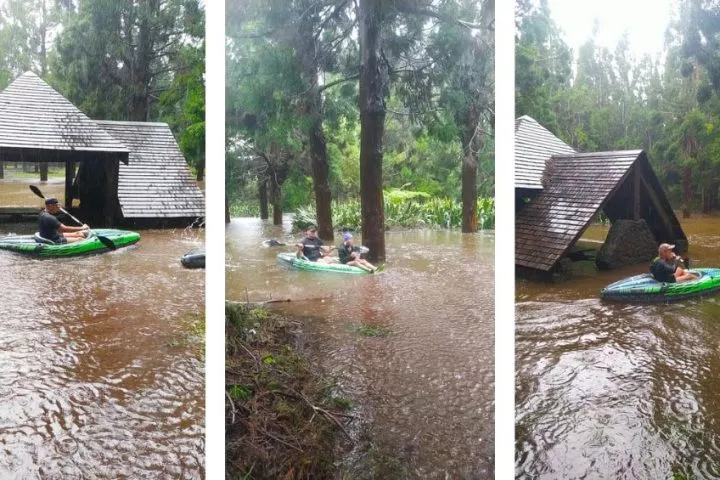 Les fortes pluies de ce week-end ont donné des idées aux habitants de la Plaine des Cafres, qui ont profité de l’inondation de la forêt de Bourg-Murat pour y faire du… kayak !