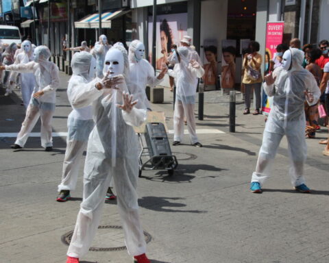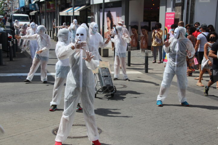 Ce samedi 27 mars, le collectif Masques Blancs Réunion manifeste en centre-ville de Saint-Pierre en signe de protestation contre les mesures sanitaires.
