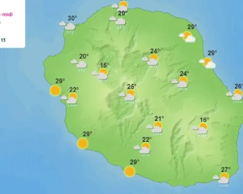 Selon Météo France, le temps sur l’île s’annonce relativement clément ce matin, avec un ciel dégagé et soutenu sur la majorité de l’île, à l’exception du versant est du volcan encore soumis à un temps gris et humide. Vers la