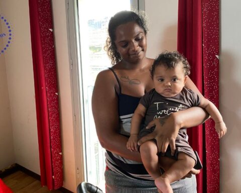 Marianne vit avec ses 9 enfants dans le bas du centre-ville de Saint-Denis. L’appartement, îlot Saint-Jacques, de la SODIAC est situé dans l’angle rue Maréchal Leclerc / ruelle Pavée. Ils sont partout, même dans l’imprimante familiale… La mère de famille