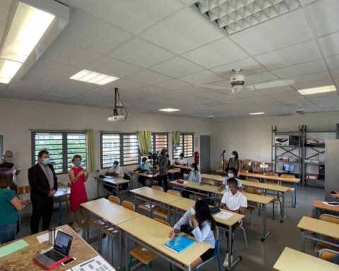 La Maire de Saint-Denis Ericka Bareigts et la Rectrice de l’académie de La Réunion Chantal Manès-Bonnisseau se sont rendues ce matin à l’école Raymond Mondon.