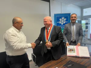 Signature de la Convention Territoriale Globale (CTG) 2022-2026 Frédéric TURBLIN Directeur de la Caf, Harry-Claude MOREL Président du Conseil d’administration de la Caf, et Michel VERGOZ, Maire de Sainte Rose, ont signé ce mardi 27 décembre 2022 une Convention Territoriale