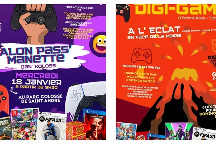 Les 18-19-20 janvier 2023, les communes de Saint André et Sainte Rose se mettent à l’heure du gaming et organisent des événements sur les jeux vidéos dans cette dernière ligne droite de