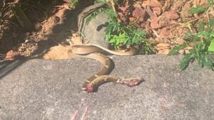 Hier soir, à plus de 22H, Nadine nous appelait, elle avait un serpent d’environs 70 cm, sur son balcon….