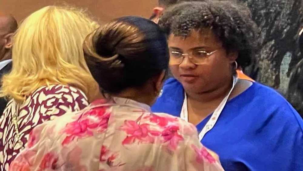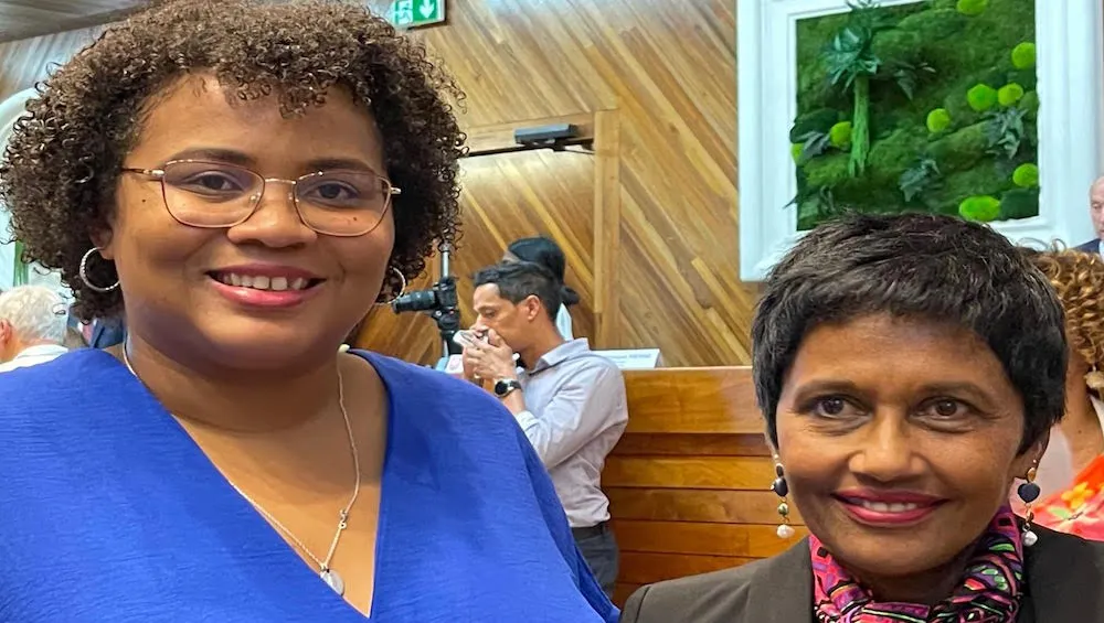 Huguette Bello (de dos) et Juliana M’Doihoma (robe bleue), la maire de Saint-Louis, très courtisée avant les sénatoriales. (Crédit photos : YM)