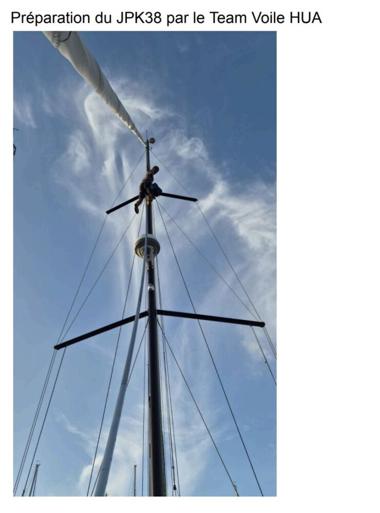 L’équipage du Team HUA est dirigé par Thibaut Lefévère, skipper principal du bateau. L’équipe est composée de : – Thibaut Lefévère : Capitaine / Régleur, il est responsable des décisions stratégiques et de l’optimisation des réglages des voiles pour maximiser les performances. – Pierre Yves Barret : Barreur, chargé de maintenir le cap du bateau, une tâche technique particulièrement délicate en cas de forte houle. – Sylvain Robert : Équipier n°1, il assure l’exécution efficace des manœuvres en optimisant les procédures depuis l’avant du bateau. – Charles Motte : Mediaman / Piano, il s’occupe du contenu vidéo et de la coordination entre le matériel et l’équipage lors des manœuvres. Le voilier de l’équipe, le JPK 38, est maintenant prêt et n’attend plus qu’à quitter le port du Port. Prévisions météo / contexte au 22/08/2024 Le bateau du Team HUA est le plus performant lorsque le vent souffle latéralement, légèrement par l’arrière, et que la houle suit la même direction que le bateau. Les navigateurs attendent donc une fenêtre météo spécifique, avec un vent venant du sud-sud-ouest à l’aller et basculant au sud-sud-est pour le retour.