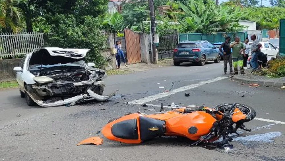 Saline Les Hauts : accident spectaculaire entre une moto et une voiture cet après-midi