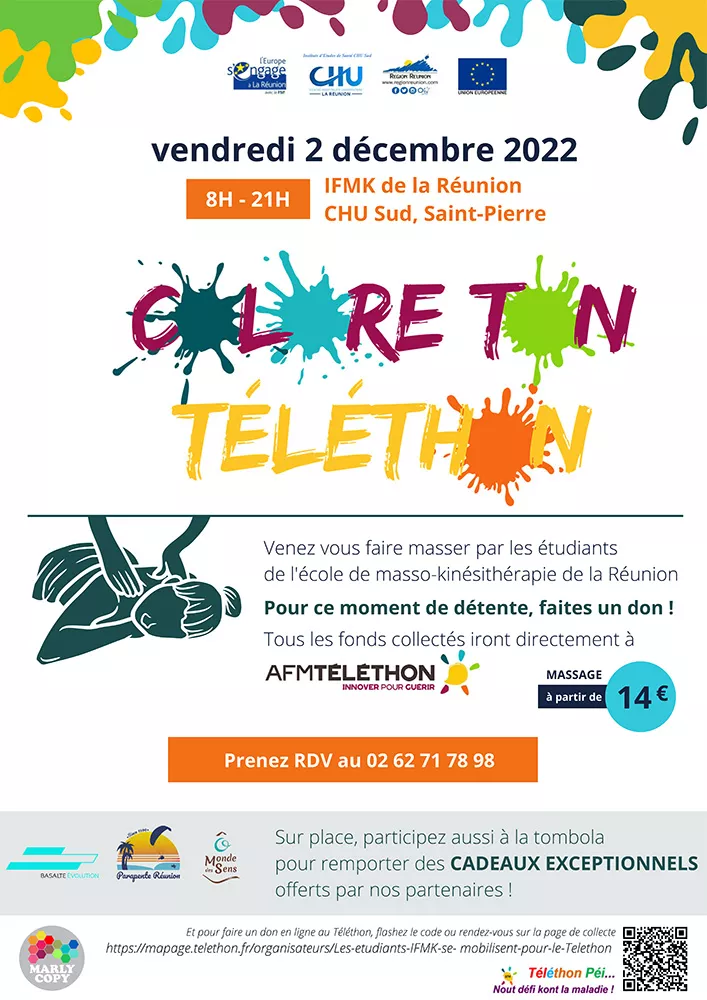Dans le cadre d’un partenariat avec l’association Téléthon pour les malades, l’école de kinés de la Réunion organise une journée de collecte de fond ce vendredi 2 décembre 2022 en proposant des massages à petit prix.