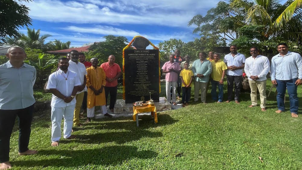 Une date plus que symbolique : le vendredi 14 avril 2023, jour de l’An tamoul 5 124. C’est cette date que Pascal Ponapin, président de l’association Pandialee du Colosse, a choisie pour inaugurer une stèle dans la cour du temple. Une stèle afin de graver dans le marbre l’acquisition, par l’association, du foncier du temple du Colosse. L’acte de propriété a été officiellement signé le 13 août 2012.
