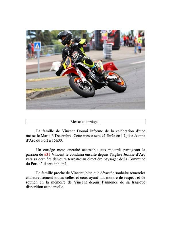 « C’est avec une grande émotion et une infinie tristesse que nous avons appris le décès de Vincent Hérode dans un accident de moto, cette nuit. Il était un de nos collaborateurs, apprécié par ses collègues et sa hiérarchie pour son sens du service publique. Vincent Hérode était aussi très impliqué dans le monde des sports mécaniques, et tout particulièrement celui de la moto. Il œuvrait, avec un engagement exemplaire, à promouvoir la pratique encadrée de ce sport et contribuait en permanence aux actions de prévention de sécurité routière. Bien connu pour sa gentillesse, sa disponibilité et son humilité, il laisse un grand vide en nous quiGant. Comble de tout, il meurt de sa passion, la moto. À sa femme, ses deux enfants, sa famille, ses proches et ses nombreux amis, j’adresse avec le Conseil Municipal et l’ensemble du personnel communal, nos très sincères condoléances. »