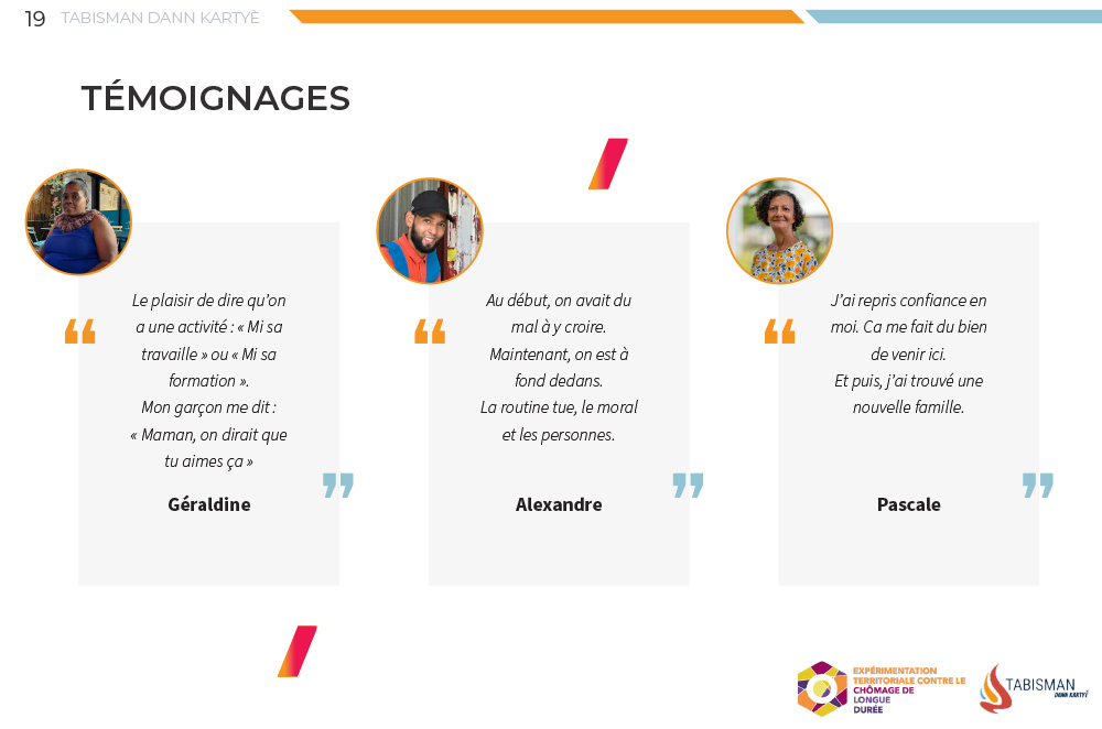 La Ville du Port porte la dé marche de droit à l’emploi pour tous, avec le projet « Tabisman Dann Kartyè » qui s’inscrit pleinement dans sa politique d’insertion professionnelle. Il entre en adéquation avec un projet structurant et innovant qui apporte une réponse pertinente aux problématiques sociales et d’emplois de la commune : le Hub de l’ESS.