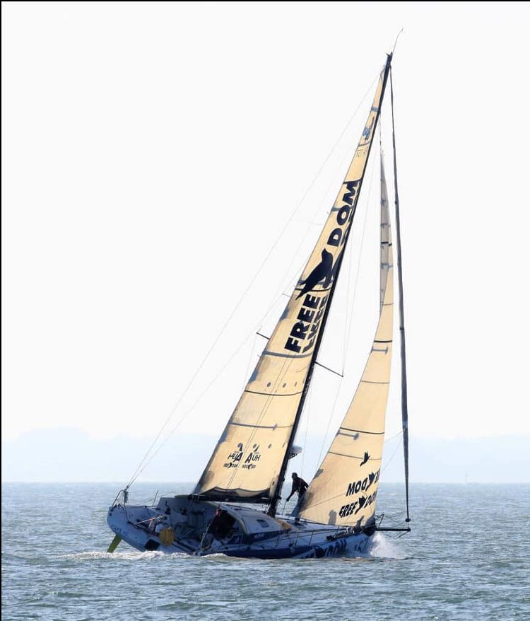 Thibaut Lefévère, notre skipper Free Dom, est de retour sur le bateau de Radio Freedom. Direction Cherbourg ce mardi 20 avril 2021 pour un entraînement avec Louis Duc.