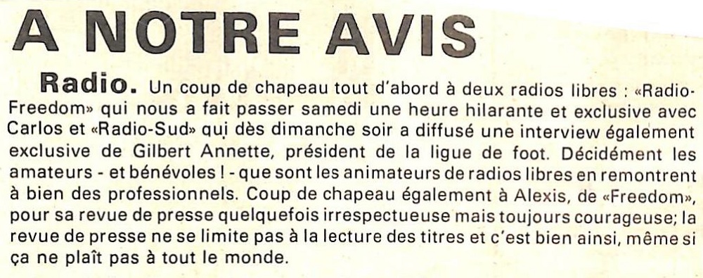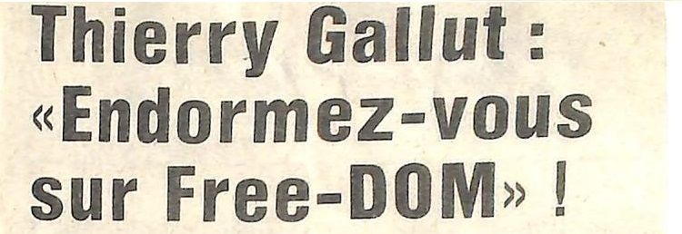 1982 Thierry Gallut hypnotise des centaines d’auditeurs par La Rédaction 3 février 1982 1 min de lecture Ne manquez pas toute l’actualité de La Réunion ! Abonnez-vous à la newsletter de Free Dom ! Valider Partager Facebook Twitter Pinterest Linkedin Whatsapp Reddit Email Vous pourriez être intéressé par 10 décembre 1982 Un canular par jour sur Radio Free Dom 11 octobre 1982 L’émission « pas de canard sans navet » 7 octobre 1982 L’émission « bleu outre-mer ou la radio de la méduse… » La Rédaction Laisser un commentaire Annuler la réponseYour email address will not be published. Enregistrer mon nom, mon e-mail et mon site dans le navigateur pour mon prochain commentaire. Current ye@r * Leave this field empty Article précédent Carlos pour la première fois à Radio Free Dom Article suivant Coup de chapeau à Radio Free Dom et à Alexis Articles récents... Hommage à Johnny Hallyday sur Free Dom 2 ce 5 décembre Mardi 30 décembre 2025 – Météo, éphéméride et horoscope du jour Saint-Joseph : découverte de 2337 plants de cannabis, arrestation de 2 individus Point sur le réseau routier départemental, 29 décembre à 16H30 Suicide sur le pont de la Rivière d’Abord : importante mobilisation des secours et des forces de l’ordre Radier submergé à Ilet Furcy : la route de Cilaos fermée à la circulation cette nuit Fortes pluies : appel à la plus grande prudence à Saint-Paul Saint-Gilles-les-Bains : une route impraticable, les riverains montent au créneau (VIDEOS) Très grands excès de vitesse : un délit passible de prison depuis le 29 décembre 2025 Fermeture temporaire du sentier de la Canalisation des Orangers (cirque de Mafate)