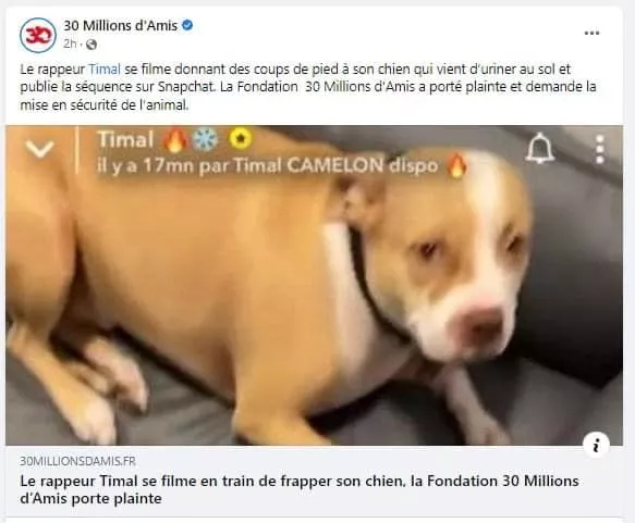 Timal condamné pour avoir frappé son chien en live