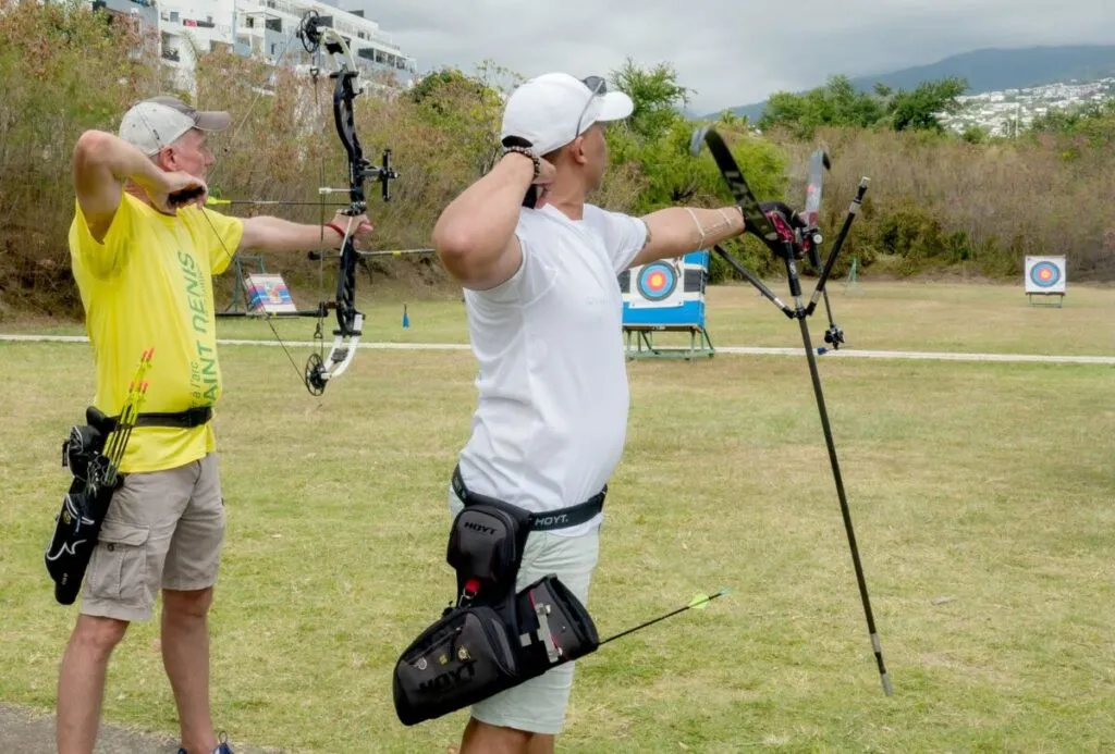 Après un échauffement, nos Robin des Bois en herbe ont eu droit à une démonstration impressionnante signée de plusieurs champions réunionnais : Bruno (champion de La Réunion 2025 en senior 2 arc classique), Gilles (arc à poulies), ainsi que Éloïsa, Océane et Neils, champions minimes de La Réunion. Avec des arcs montés semblables à ceux utilisés aux Jeux Olympiques, le spectacle a suscité l’admiration des petits spectateurs.