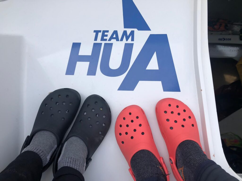 « Il y a peu d’air ici, on a vu les concurrents s’échapper avec la porte qui s’est fermé devant nous, au cap Finisterre. Moralement, c’était dur. Après, on a eu de bonnes conditions, une mer assez calme. On tient le bon bout malgré que ça soit dure de ne pas avancer. Les nuits, ont ne dort pas… on est très fatigué« , se confie Thibaut.