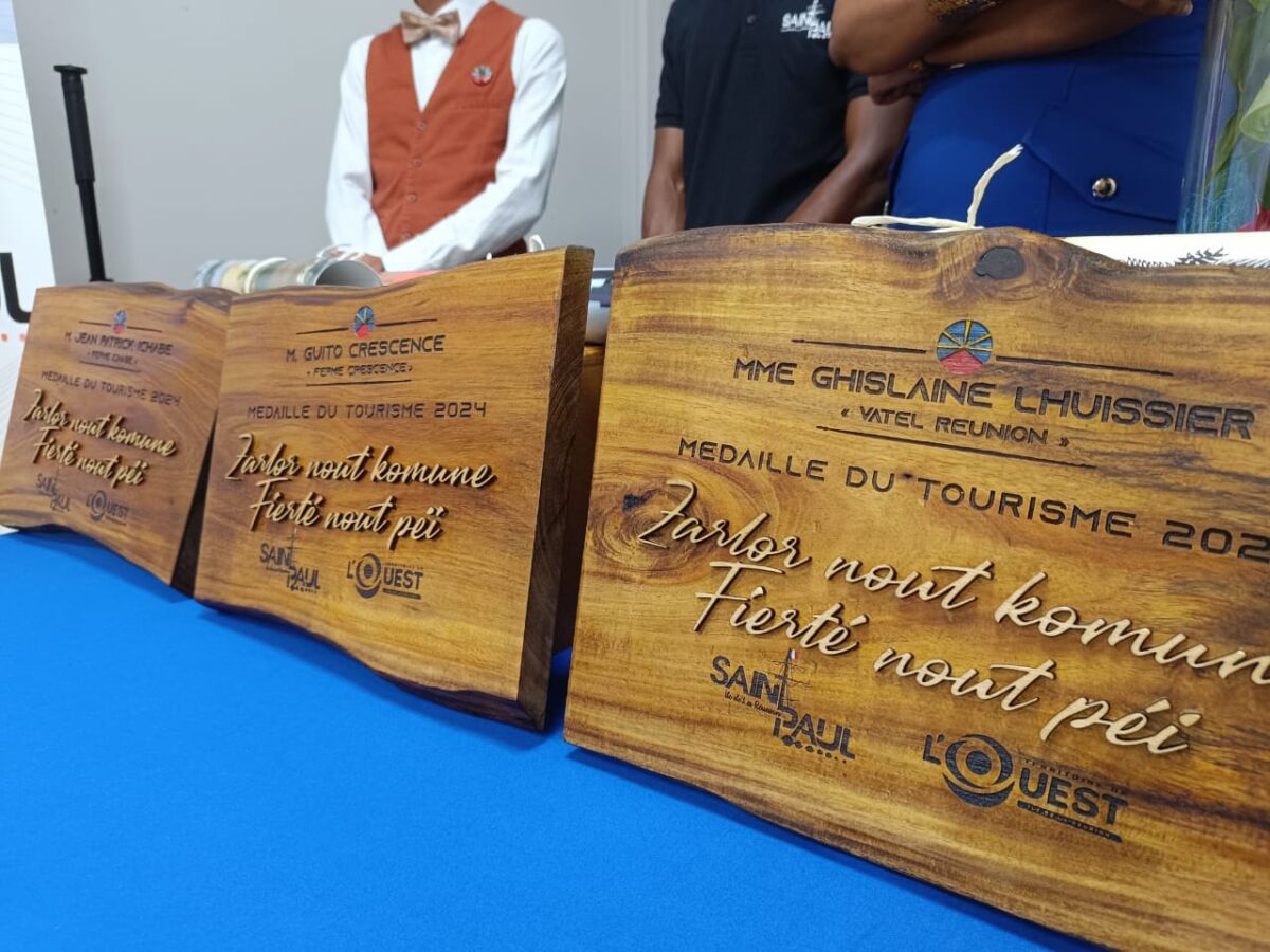 Les distinctions ont été décernées à des figures emblématiques du tourisme local, telles que Madame Ghislaine Lhuissier, directrice de l’école Vatel, Monsieur Guito Crescence de la Ferme Crescence, Stéphanie Jautzy, directrice de l’Office de tourisme de l’Ouest, Yves Régnier, gérant du club de plongée Bleu Marine et Patrick Ichabe, propriétaire de la Ferme Ichabe. Chacun des lauréats a été reconnu pour son engagement à promouvoir Saint-Paul comme une destination authentique et pour son rôle clé dans la valorisation de notre patrimoine culturel et naturel.