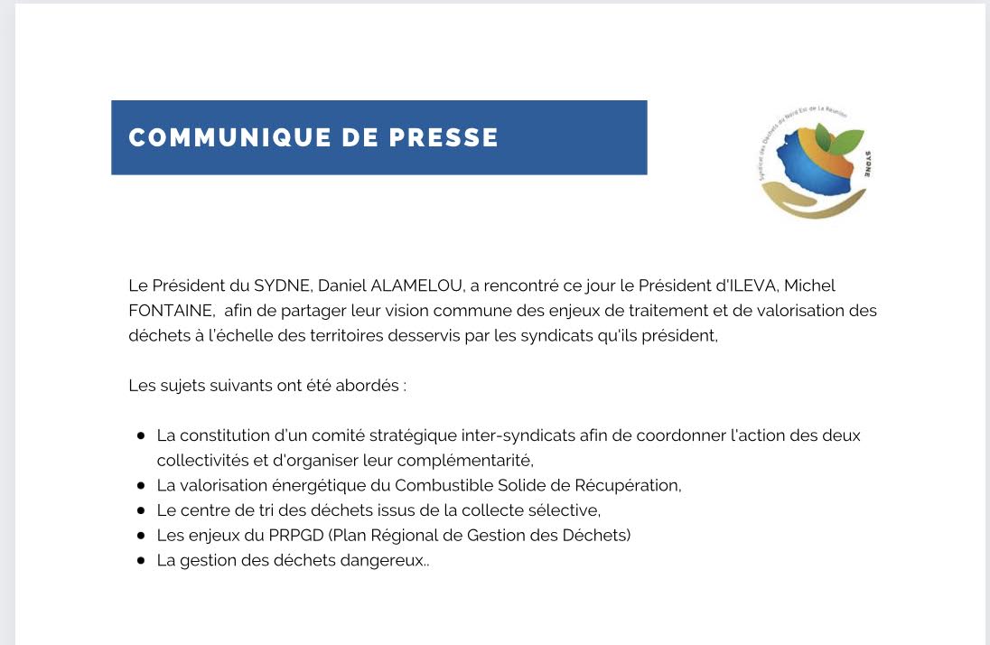 Traitement des déchets : rencontre entre les présidents de SYDNE et d’ILEVA