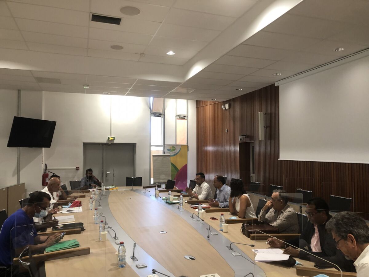 Emmanuel Séraphin, président du TCO et maire de Saint-Paul, Vanessa Miranville, maire de La Possession, Olivier Hoarau, maire du Port, Daniel Pausé, maire de Trois-Bassins et Bruno Domen, maire de St-Leu, se sont longuement entretenus, cet après-midi avec l’Intersyndicale Transports, afin de trouver une solution pour sortir au plus vite de la grève entamée par les conducteurs de cars scolaires depuis le 10 août.