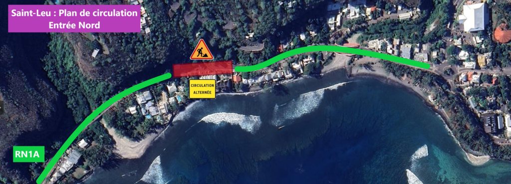 - Prendre la RD13 (Rue Roland Garros et Chemin CD 13 Etang) pour accéder au Sud et au Nord de Saint-Leu ainsi qu’au centre-ville.