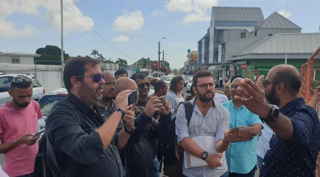 Il s’agit notamment des membres de l’association des commerçants de Saint-André présidée par Shiva Mouraman. Ce rassemblement de ce matin a été pour eux l’occasion de tenir une conférence de presse afin de soulever plusieurs points concernant justement les travaux qui se déroulent depuis quelques temps au centre-ville (Avenue de Bourbon, d’Isle de France, Place de la mairie…).
