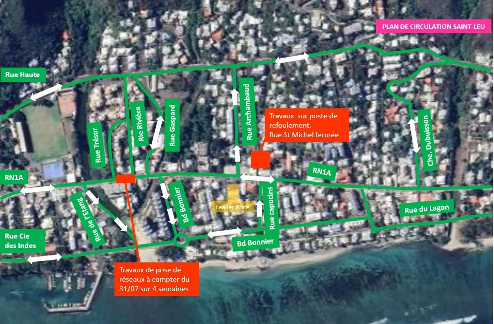 Les travaux effectués pour la modernisation des réseaux d’eaux usées de la ville de St-Leu se poursuivent normalement.