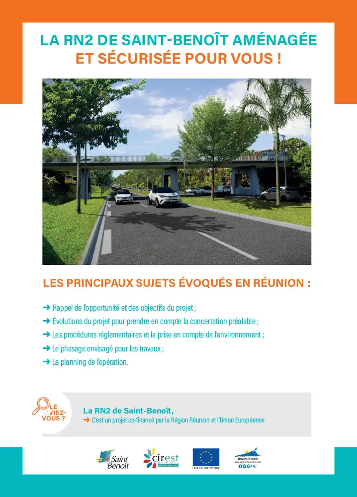 Travaux RN2 à St-Benoit : Réunion de concertation publique ce 9 octobre