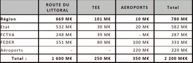 Comme vous pouvez le voir dans le tableau ci-dessus, uniquement pour la NRL, l’opération est estimée à 1, 66 milliards d’euros. L’Etat décide alors de s’engager à hauteur de 532 millions d’euros au titre des aides directes et d’accorder au projet 248 millions d’euros au titre des aides indirectes (le FCTVA). Ces montants viennent donc compléter ceux de la Région et de l’Europe. Sur les 532 millions d’euros d’aides directes, 434 ont déjà été versés au maître d’ouvrage au profit des entreprises engagées dans ce chantier hors norme. Chantier qui ne verra cependant jamais le jour dans sa totalité à l’issue des deux mandatures de Didier Robert.