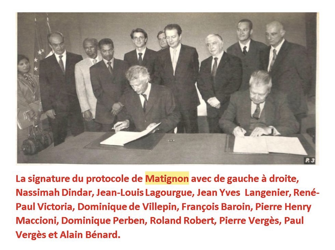 Voici la signature de « Matignon 1 », « Matignon 2 » et « Matignon 3 » en photos. Trois dates « historiques » à retenir dans l’histoire de la NRL : 19 janvier 2007 avec Paul Vergès et Dominique de Villepin (sous la mandature du Président de la République Jacques Chirac); 14 octobre 2010 avec Didier Robert et François Fillon (mandature de Nicolas Sarkozy) et 16 mars 2022 avec Huguette Bello et Jean Castex (mandature d’Emmanuel Macron).