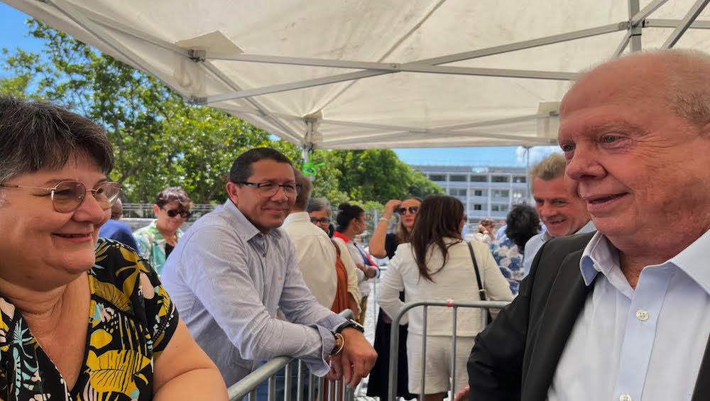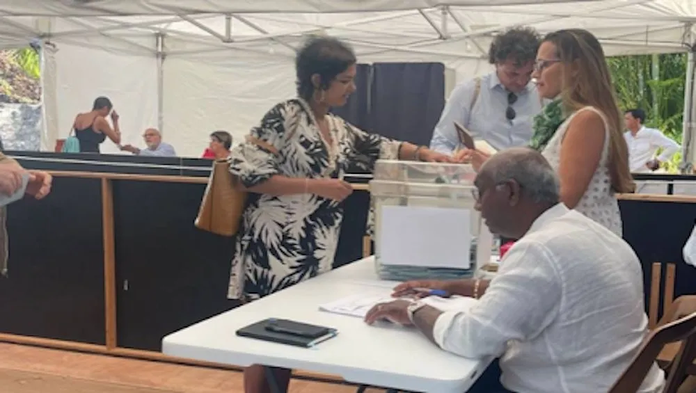 Richard Nirlo, maire de Sainte-Marie et président du CCAS, qui a assisté dimanche soir au dépouillement, à la préfecture, accompagné de son DGS Teddy Nacaouelé (chemise bleue claire), pourra respirer. Une solution a été trouvée concernant les tarifs du périscolaire.
