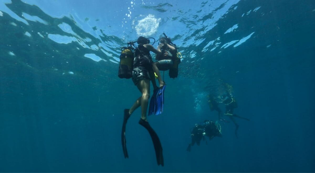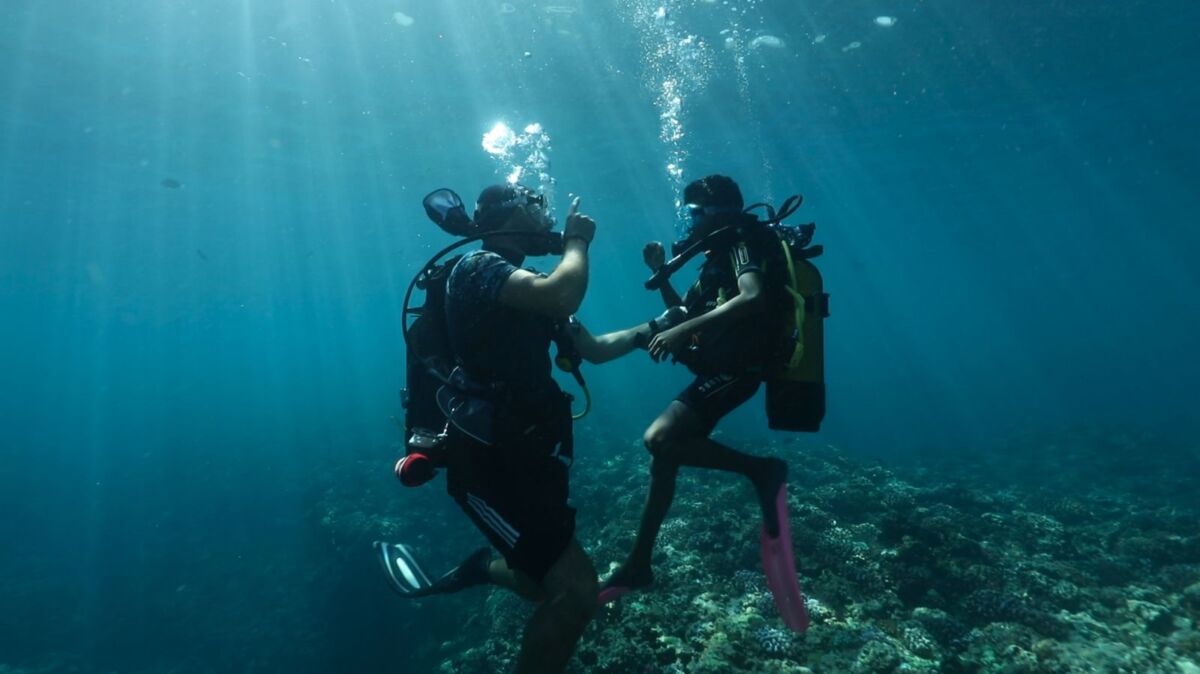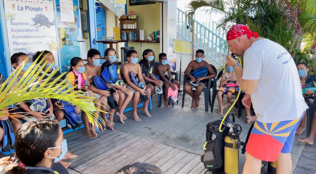 Les plongées, avec masques, palmes et bouteilles, se sont ensuite effectuées en tandem. “Chaque enfant est accompagné d’un moniteur, qui le rassure et qui le guide dans sa découverte du milieu marin et des poissons”, résume Yves Reignier, qui dirige le club de plongée Bleu Marine Réunion. La bienveillance des moniteurs a achevé de convaincre les enfants les plus inquiets, qui sont tous remontés tout sourire après leur toute première plongée.