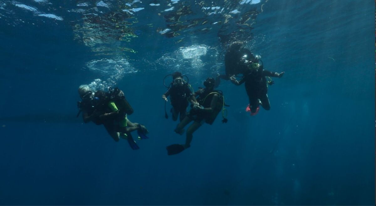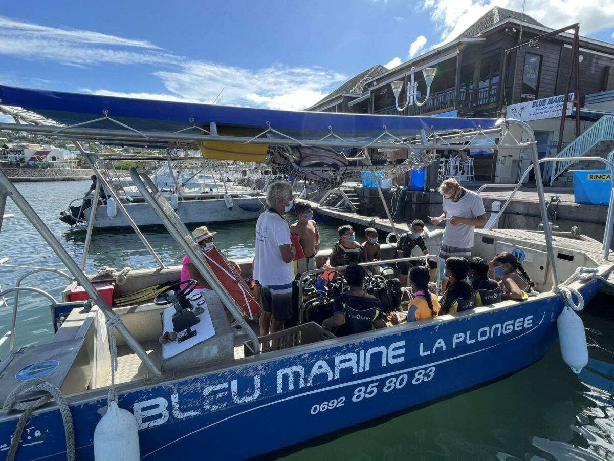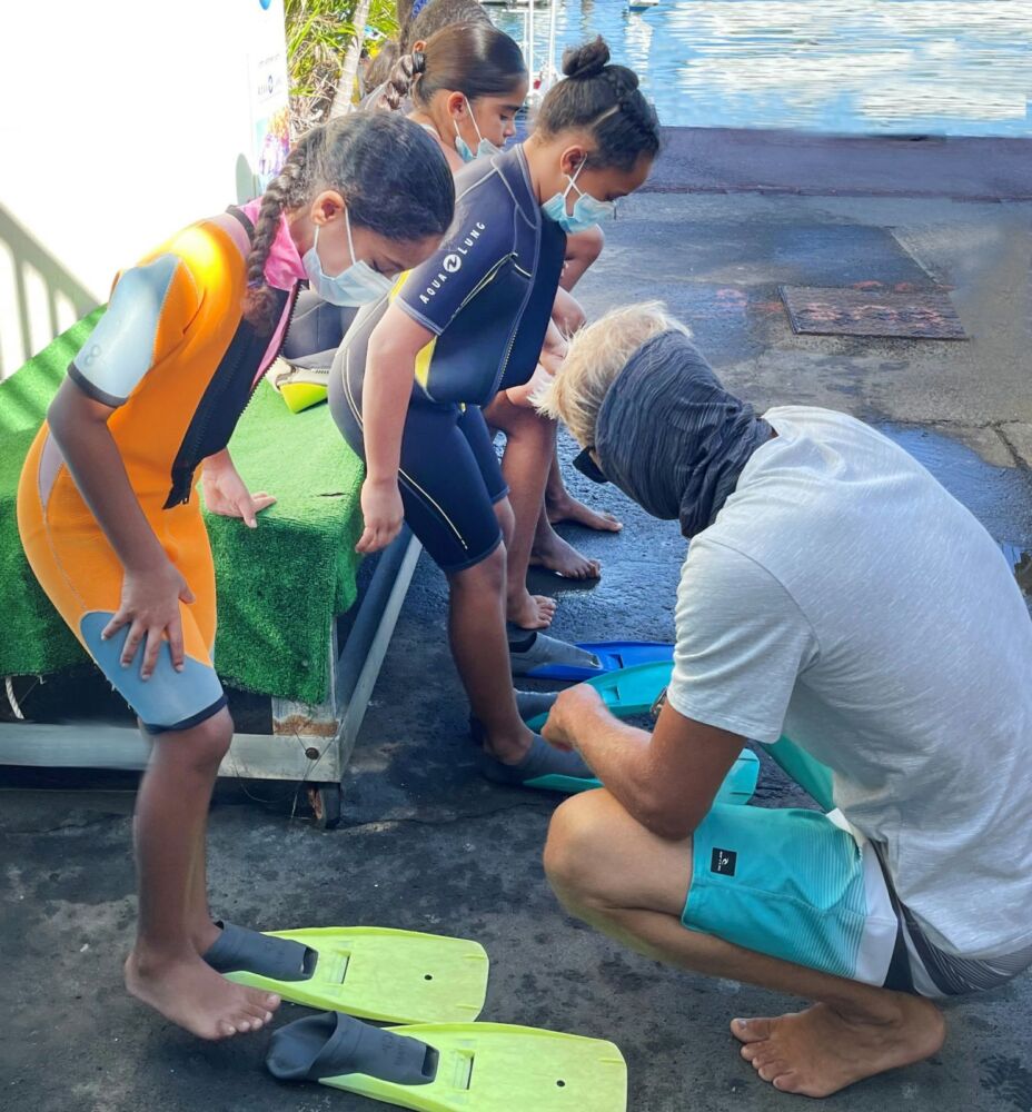 Ensuite, c’est par bateau que les marmailles ont pris la mer, direction le large. Une fois arrivés au “Canyon”, un spot de plongée qui se situe juste derrière le spot de surf de la plage des Brisants, les choses sérieuses peuvent commencer.