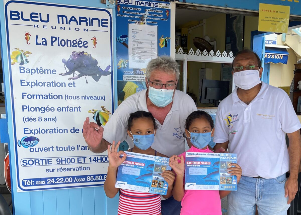 Grâce au soutien des équipes de Bleu Marine Réunion, l’Association 1000 Sourires a permis à une vingtaine d’enfants de Saint-Paul de nager avec les poissons multicolores du lagon. Ils ont pu effectuer leur baptême de plongée au “Canyon”, à proximité du port de Saint-Gilles.