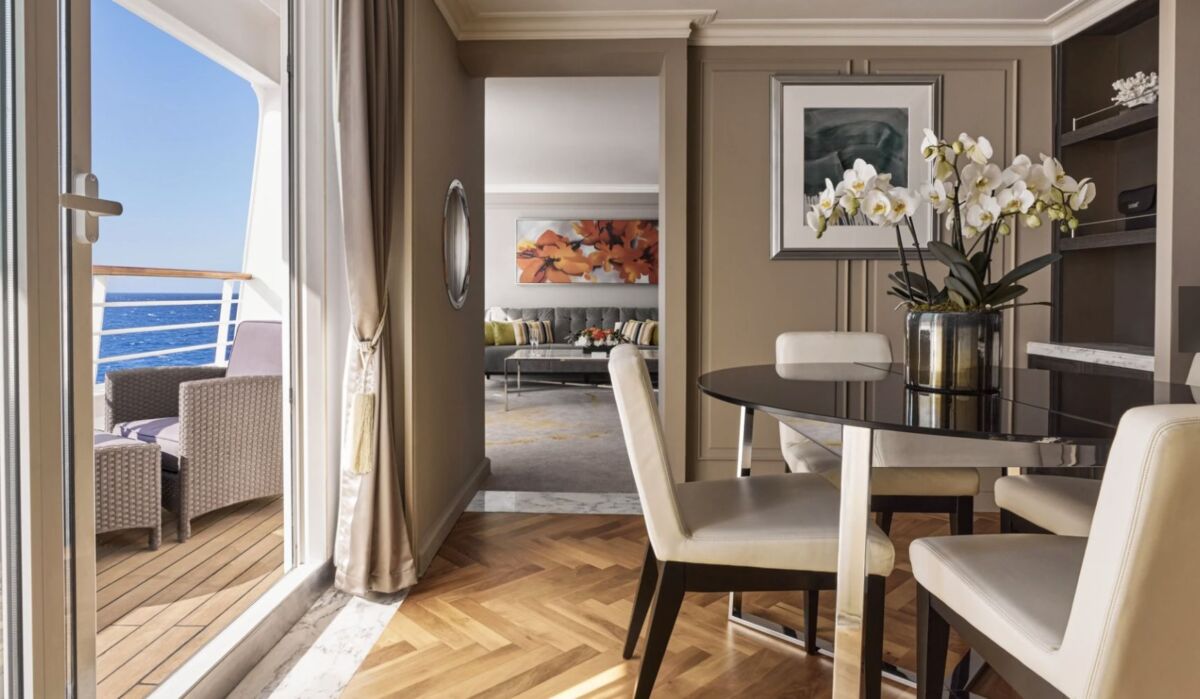 Il fait 250 m de long , et transporte 1050 passagers au sein de chambres somptueuses qui ont de quoi faire rêver… Allez petite visite guidée….pour les suites avec vue époustouflante sur la mer !