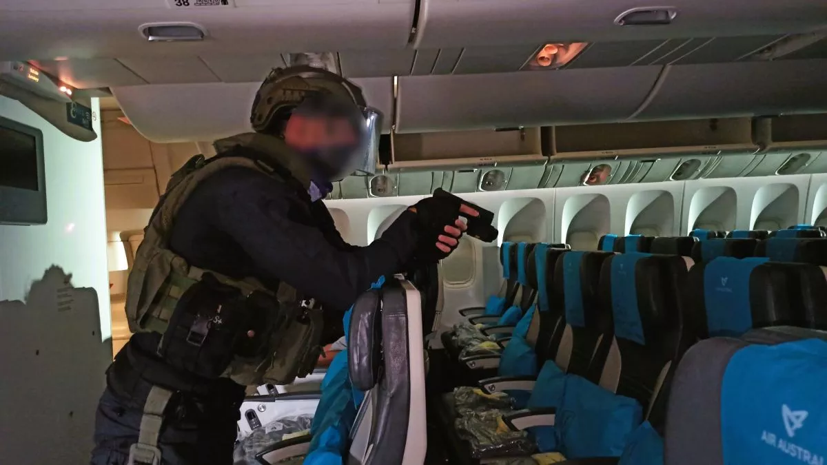 Les personnels de l’AGIGN se sont exercés dans le cadre d’un détournement d’avion par des terroristes. Ils ont ainsi pu mettre en œuvre l’évacuation d’un otage victime d’un malaise diabétique ; les négociations afin de libérer les jeunes otages ; le lancement de l’assaut et l’’évacuation et la récupération des otages.