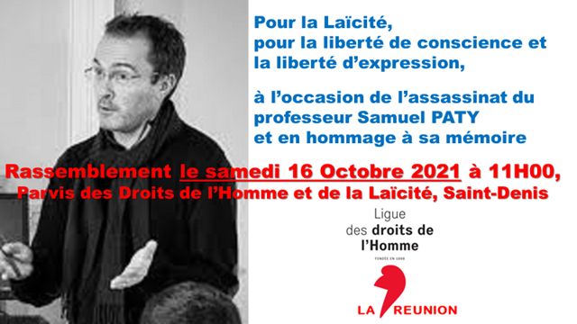 A l’occasion de la mort de Samuel PATY, nous invitons tous les associations citoyennes ainsi que l’ensemble des Réunionnais à rendre hommage à sa mémoire et à marquer leur attachement aux principes et valeurs qui nous rassemblent.
