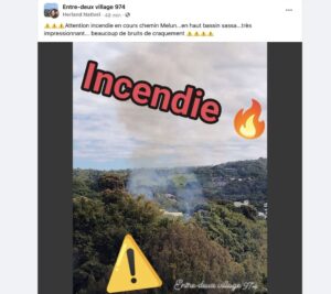Un incendie s’est déclaré sur le chemin Melun à L’Entre-Deux. Un auditeur nous en a informés vers 12h00, mentionnant de nombreux bruits de craquement.