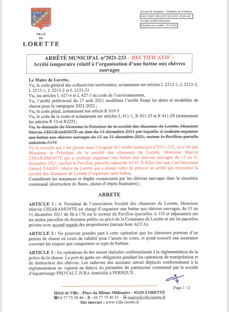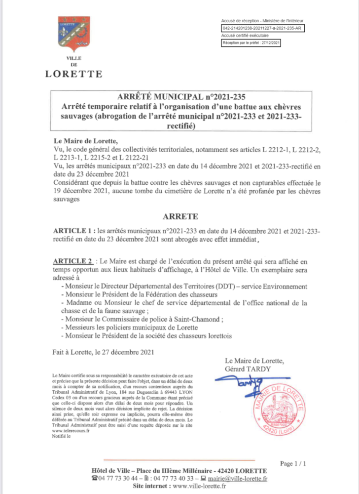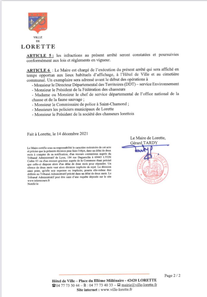 Gérard Tardy, maire de Lorette, DVD(Divers droite), dans la Loire, 84 ans, est poursuivi pour « atteinte volontaire à la vie d’animaux domestiques ou apprivoisés », « abattage en dehors d’un abattoir dans des conditions illicites » et « mise à mort d’animaux sans précaution pour leur éviter de souffrir ».