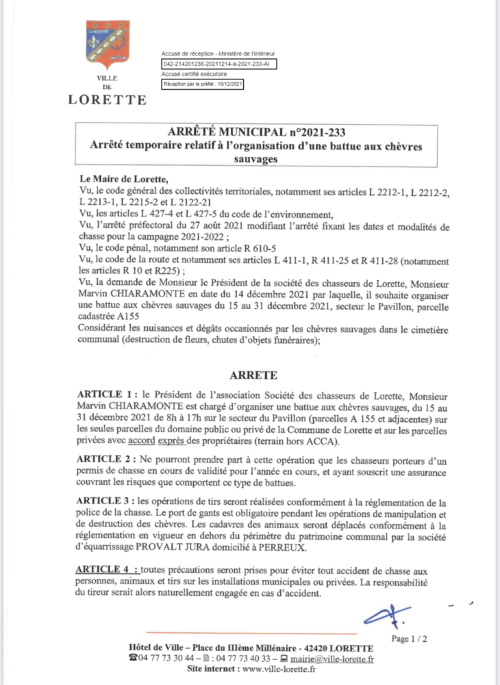 En cause, une douzaine de chèvres qui mangeaient les chrysanthèmes et salissent les tombes du cimetière,  et après une battue, le dimanche 19 décembre 2021, 9 chèvres sur 12 avaient été abattues par des chasseurs.
