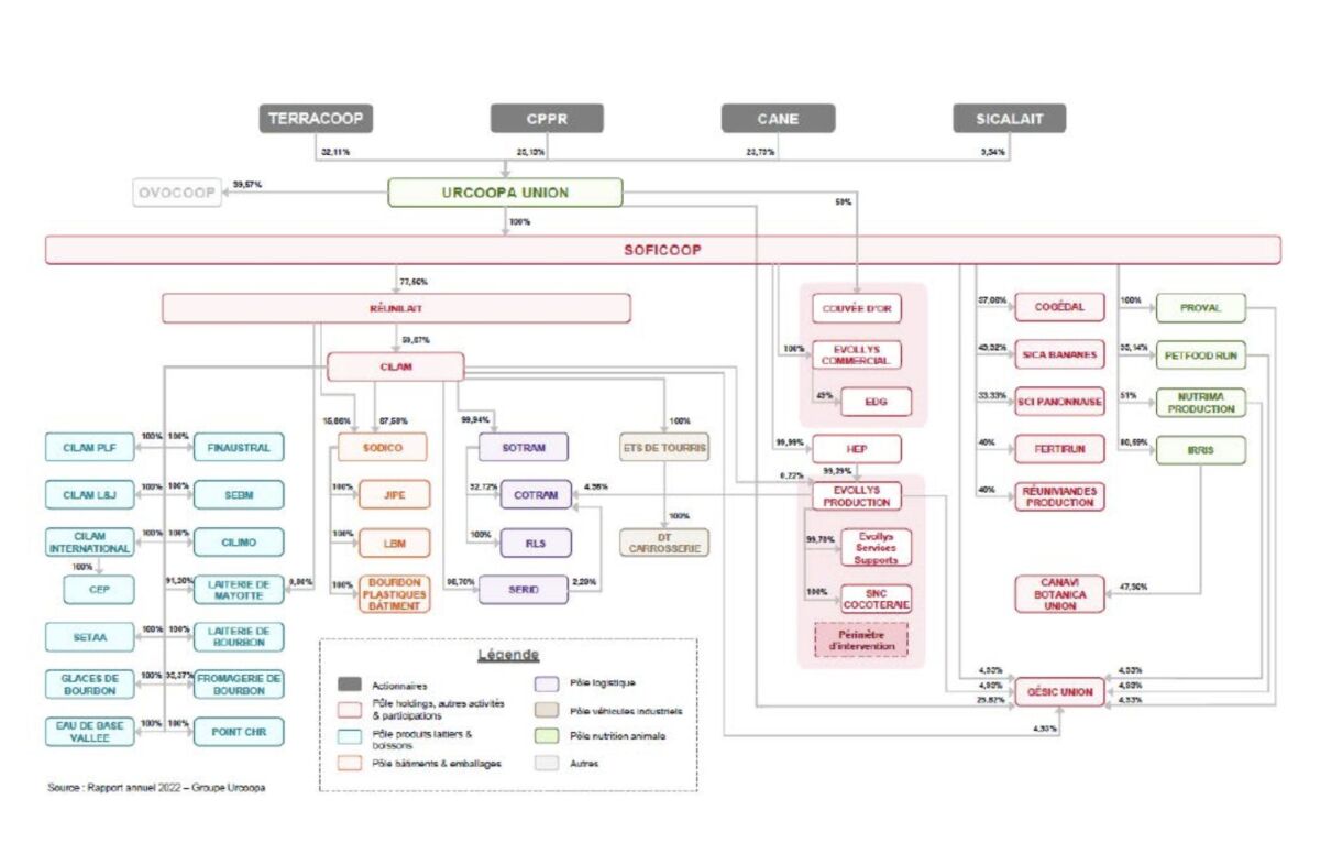 Du coup, pour caricaturer, l’Urcoopa, forte de sa cinquantaine de sociétés (voir infographie ci-dessus), et voyant le joli bénéfice dégagé par l’abattoir, souhaite l’accaparer. Autrement dit, elle veut la cuisse, la partie la plus charnue, quitte à ne laisser qu’une petite aile à Duchemann&Grondin. L’Urcoopa prétend que sa banque (Soficoop) serait en difficulté, raison pour laquelle, il lui faudrait tout récupérer. Soficoop serait en difficulté mais l’Urcoopa d’Henri Lebon vient de racheter COGEDAL, vient de se positionner sur Gamme Vert et prépare actuellement ses 40 ans avec une méga fiesta (1400 invités et autant de brochettes de poulet je suppose) prévue à la fin de ce mois. Allez comprendre !
