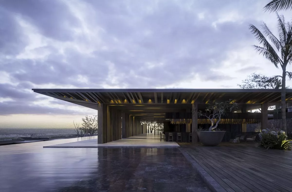 Une immense varangue s’ouvrira sur la piscine à débordement avec pour horizon l’océan. Attenant à cet espace détente, un très grand bar proposera rafraîchissements et gourmandises à toute heure de la journée, ainsi qu’un espace dédié à des musiciens pour la mise en ambiance des lieux.