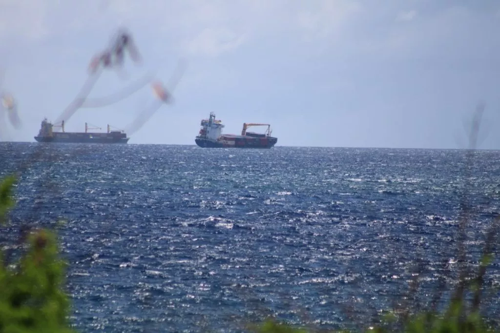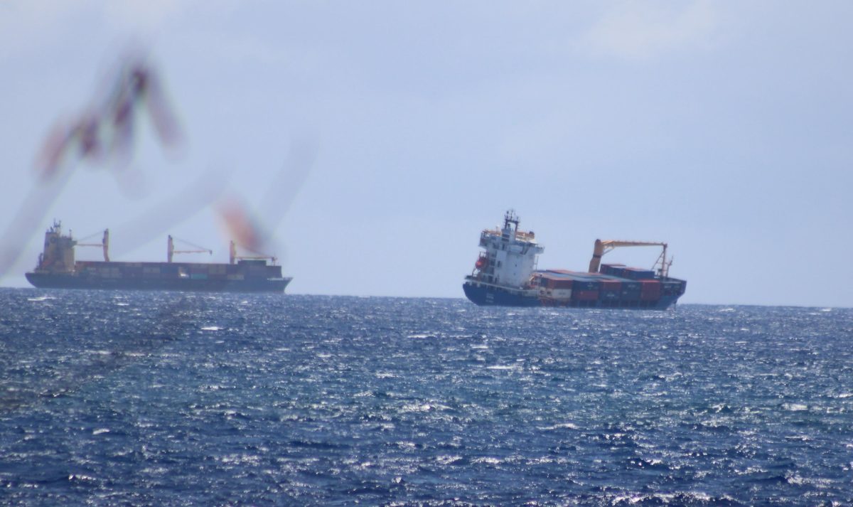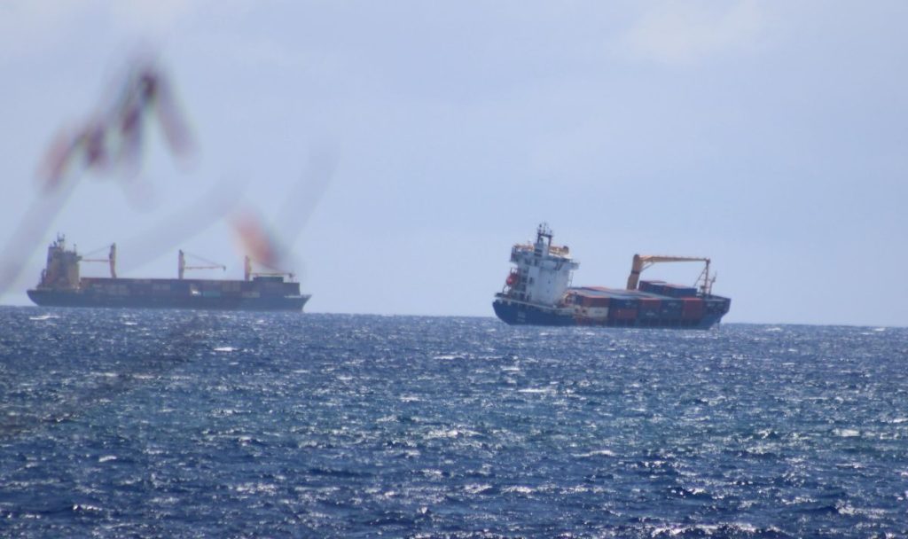 Un auditeur nous informe qu’un porte-conteneurs bleu et blanc serait en difficulté au large de la Route du Littoral.